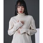 セーター ニット ウールミックス 2×2RIB 長袖 タートルネック リブニット メンズ レディース