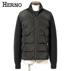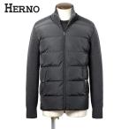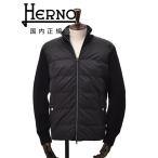 ヘルノ HERNO ハイブリッドダウン メンズ ダウンジャケット フィッシャーマンリブ ブラック 黒 切り替えデザイン 後身頃ニット スタンドネック 国内正規品