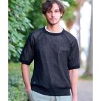 セーター ニット 透かし編みメランジドルマンメッシュ5分袖サマーニット メンズ
