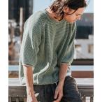セーター ニット 麻綿ニット ハンドステッチ 5分袖 サマーニット TEE メンズ レディース