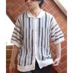 ポロシャツ オーバーサイズ リネンタッチストライプニット半袖ポロシャツ メンズ レディース