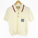 グッチ GUCCI コットン ニット ポロシャツ 半袖 692863 ロゴ ポケット アイボリー ゴールド M (株)ケリングジャパングッチディヴィジョン