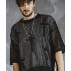 セーター ニット 「NO ID.」Cross Motif Layered Sheer Knit Crew Neck Pullover / クロス モチ