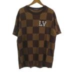 ルイヴィトン LOUIS VUITTON 美品 24SS ダミエ ウィズストラス LVパッチ ニット Tシャツ カットソー 半袖 ブラウン L