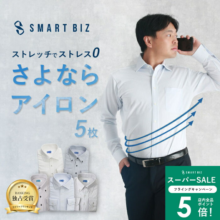 【さよならアイロン】 ワイシャツ 5枚セット 形態安定 長袖 30代 40代 ニットシャツ ポロシャツ 形状記憶 ノンアイロン ノーアイロン ニットワイシャツ メンズ Yシャツ ストレッチ ビジネス 仕事 白 青 水色 スリム 大きいサイズ S 3L 4L 5L [洗濯後返品OK]