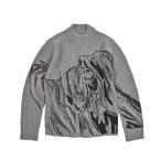 AMIRI アミリ / カシミヤ混 ニットセーター モックネック ミドルゲージ 長袖 ウール カシミヤ 総柄 グレー