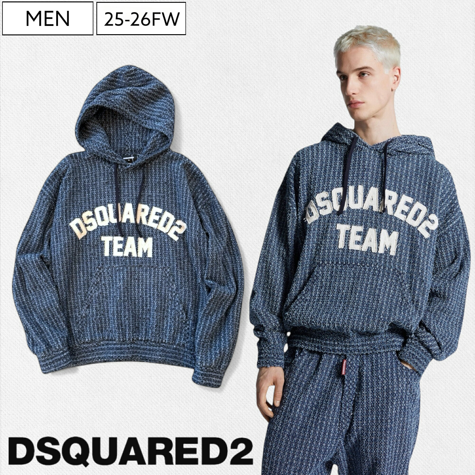 【定価238,700円(税込)】DSQUARED2 ディースクエアード スタイリッシュなツイード風デニムと洗練されたデザインで魅せる Dsquared2 Teamパッチ付プルオーバーフーディ パーカー スウェット ニット New York Denim Hoodie 長袖 ブルー S74AM1602D30016470 イタリア製 メンズ
