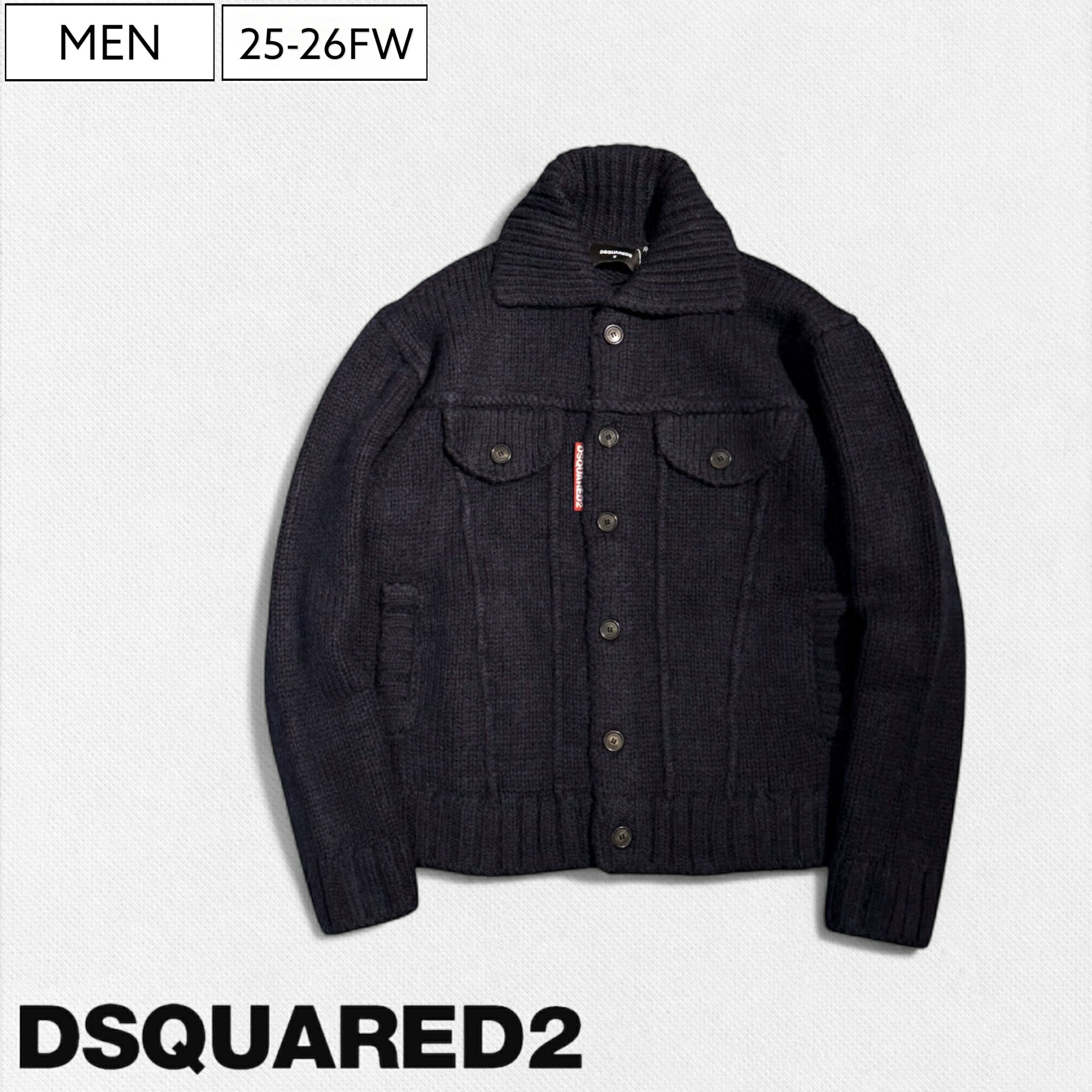 【定価216,700円(税込)】DSQUARED2 ディースクエアード モヘア混ウールニットの柔らかな着心地と洗練されたデザインで魅せるモヘア混ウールニットジャケット レッドフラグタグ ブルゾン セーター アウター ロングスリーブ 長袖 ネイビー S74HA1538D13143 メンズ