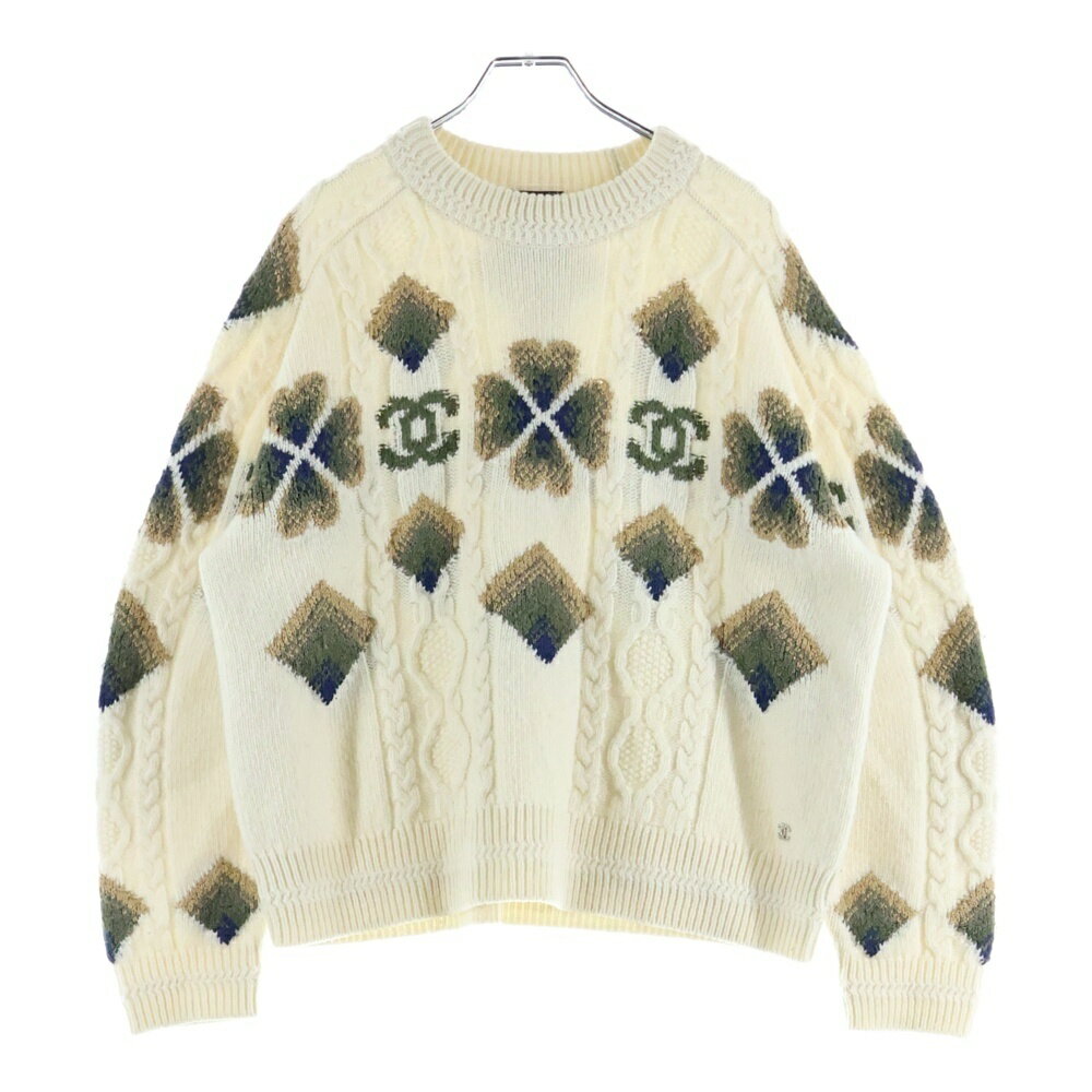 CHANEL シャネル ココネージュコレクション 総柄長袖ケーブルニットセーター アイボリー