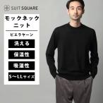 【スーツスクエア】メンズ モックネックニット 長袖 ウォッシャブル プレーティング天竺 無地 ブラック系