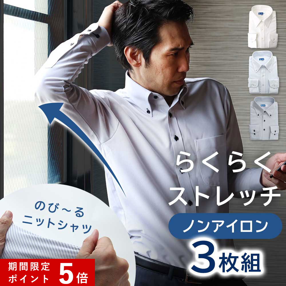 ワイシャツ 完全ノーアイロン ニットシャツ 3枚セット 長袖 メンズ 超形態安定 ストレッチ ノンアイロン 形状記憶 Yシャツ おしゃれ 吸水速乾 カッターシャツ