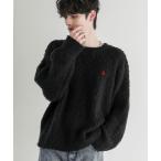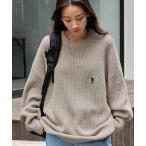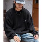 セーター ニット U.S. POLO ASSN. /ユーエスポロアッスン 別注 ワンポイントロゴ刺繍 畦編み ビックシルエット クルーネックプルオーバ