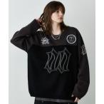 セーター ニット 「HOOK」配色ダメージ加工ニット風スウェット (AW) メンズ レディース