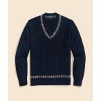 【SALE/35%OFF】BROOKS BROTHERS ウール ケーブル Vネックテニスセーター ブルックス ブラザーズ トップス ニット ホワイト【RBA_E】【送料無料】