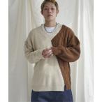 セーター ニット リメイクVネックニット 配色/ステッチ/アシメ/春ニット/ルーズシルエット メンズ レディース