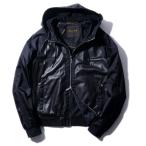 イタリア製 MOORER ムーレー パンチングレザー・ナイロン フーデッドブルゾン COSIMO-PEP NEROブラック メンズ
