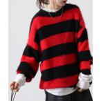 セーター ニット Feather yarn border crew neck knit / フェザーヤーンボーダークルーネックニット unisex メ