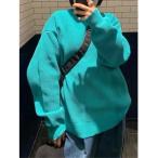 セーター ニット オーバーサイズ畦編みクルーネックニットセーター メンズ レディース