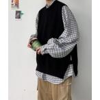 セーター ニット メンズ秋冬オーバーサイズ無地ニットベスト メンズ レディース