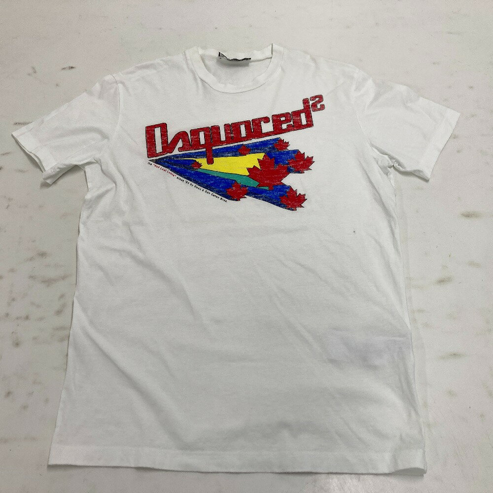 【中古】 DSOUARED2 ディースクエアード プリントTシャツ ハイブランド ホワイト サイズL イタリア製 メンズ 半袖Tシャツ 02w05970 【牛久店】