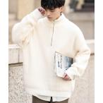 セーター ニット オーバーサイズ畦編みハーフジップニットセーター メンズ レディース