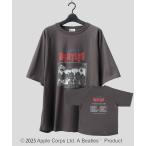 A.M.S. THE BEATLES ビートルズ Tシャツ 古着風 ラグラン バンドTシャツ エー.エム.エス. トップス カットソー・Tシャツ ブラック ホワイト【送料無料】