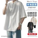 夏新作バンドカラー リネンシャツ メンズ プルオーバー シャツ 半袖 ヘンリーネック Tシャツ 綿麻Tシャツ トップス 無地Tシャツ ティーシャツ バンドカラーシャ