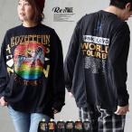 Tシャツ 長袖 アンサンブル クルーネック 綿100 コットン サーマル バンドT プリント 伸縮性 ゆったり パティ