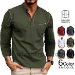 ヘンリーネック Tシャツ カットソー 長袖 メンズ 無地 プルオーバー スリム シンプル カジュアル シンプル 春 インナー