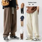 ワイドパンツ ズボン メンズ 大きいサイズ 調整紐 ウエストゴム 綿 無地 春服 秋服 薄手 サルエルパンツ オールシーズン スラックス イージーパンツ