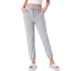 cheibear レディース コットンパジャマパンツ ドローストリング 伸縮性ウエスト ストライプ ラウンジ ヨガ ボトムス ポケット付き グレー S