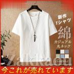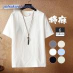 夏新作 半袖 Tシャツ メンズ 夏服 無地 トップス 大きいサイズ ゆったり 綿麻 涼しい かっこいい カジュアル シンプル カットソー ティシャツ
