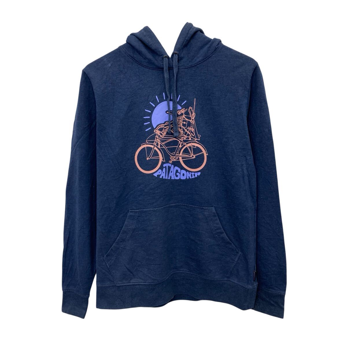 patagonia プリントスウェット パーカー M ネイビー パタゴニア プルオーバー ビッグプリント 裏起毛 古着卸 アメリカ仕入 a708-5613