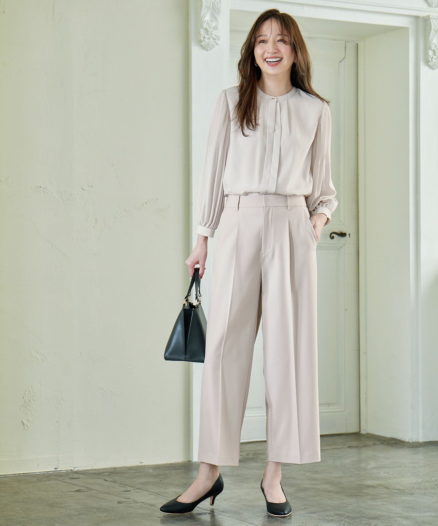 BEIGE,(ベイジ)/MONTAIGNE / イージーウエストウールワイドパンツ