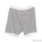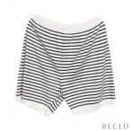 プラダ PRADA ショートパンツ イージーパンツ ボーダー シルク コットン オフホワイト ネイビー UMP120 メンズ 中古