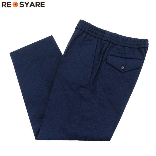 【未使用】GUCCI グッチ 現行品 GG コットン キャンバス パンツ 46 ネイビー 総柄 ドローコード イージー スラックス 国内正規品 47314 【中古】