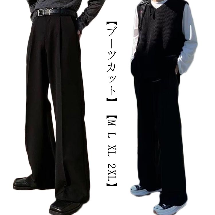 【期間限定10%OFF】フレアパンツ メンズ スラックス センタープレス ブーツカット 黒 フレア パンツ ボトムス ノータック テーパード シューカット ワイドパンツ 春