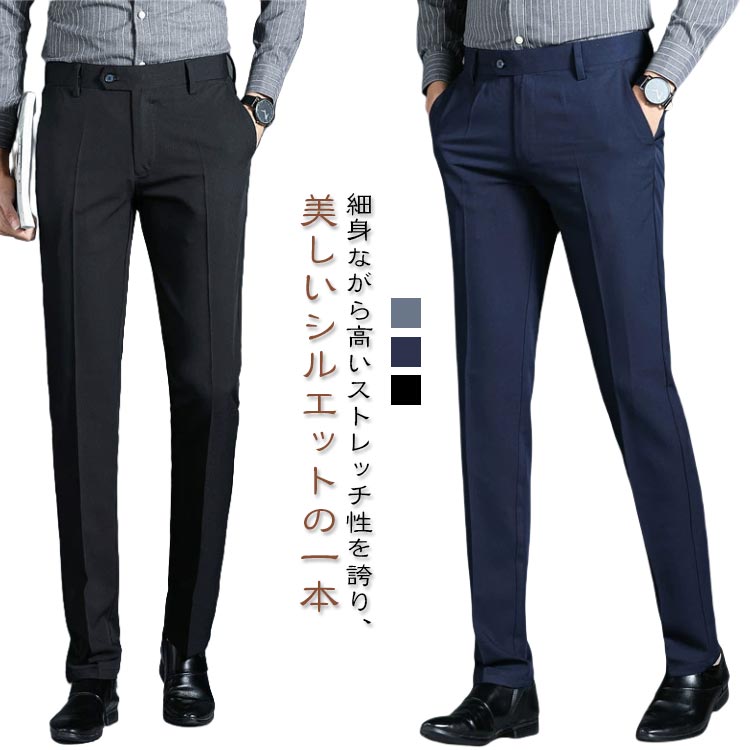スラックス メンズ 春 夏 ビジネスパンツ ストレッチ ゴルフパンツ 細身 スリム ビジネス ビジカジ スーツパンツ スリムパンツ ストレート 大きいサイズ 美脚 ノータック センタープレス 薄手 サラサラ ズボン おしゃれ 父の日 【送料無料】