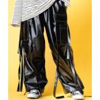 カーゴパンツ CHRIS C(クリス C)2WAY ベルト レザータッチ/デニム ワイドカーゴパンツ「セットアップ対応可」 メンズ レディース