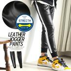 レザーパンツ ジョガーパンツ メンズ PUレザー 合皮 サイドライン イージーパンツ ストリート