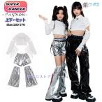 短パンツ レッグカバー シルバー k-pop 衣装 キッズダンス衣装 セットアップ へそ出し トップス フリンジ 短パンツ レザーパンツ tシャツ 長袖 ヒップホップ 女