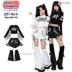 短パンツ レッグカバー 黒 白 k-pop 衣装 キッズダンス衣装 セットアップ へそ出し トップス フリンジ 短パンツ レザーパンツ レッグカバー tシャツ 長袖 ヒップ