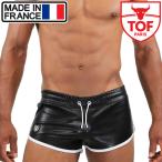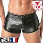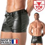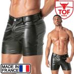 【SALE 50%OFF】メンズ 合皮ハーフパンツ ハーパン レザー風 フェイクレザー パンツ タイトフィット フランス製 フェチ TOF Paris KINKY ミニ極小ショーツ(tof344)