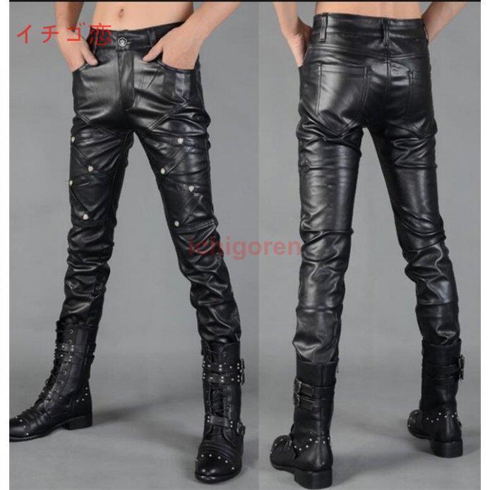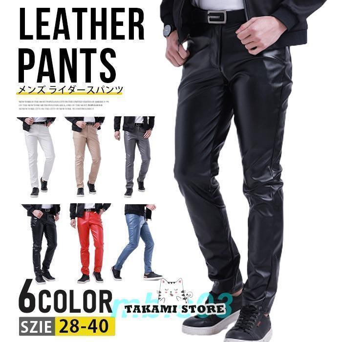 レザーパンツ メンズ 革パン PU革 バイクパンツ ロングパンツ 薄手 細身 スキニー スリム ライダース 防風 カジュアル お兄系 高品質