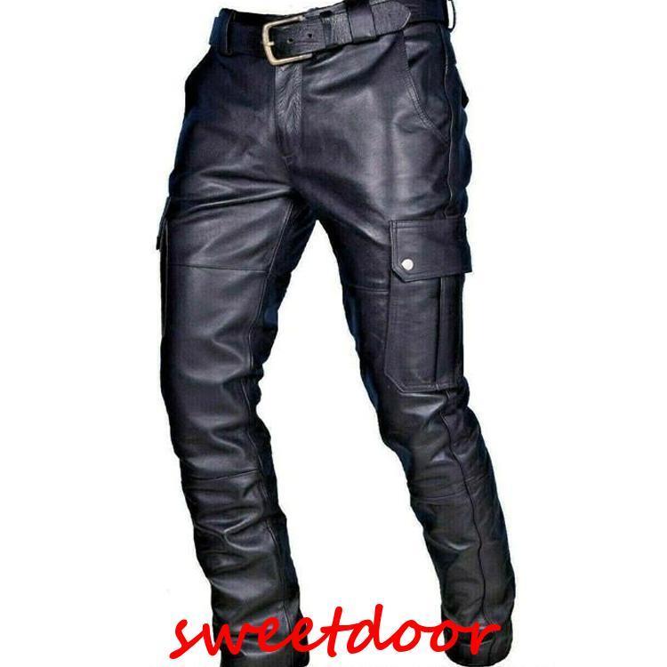 レザーパンツ メンズ 革パンツ 皮パンツ バイクパンツ バイカーパンツ フェイクレザー PU ズボン ライダー カジュアル 防風 撥水 おしゃれ