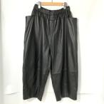 quitan ふぉ PHAETON レザーパンツ 557-4140118 ワイドパンツ 総ゴム 古着 無地 羊革 フェートン サイズ1 Mサイズ相当 ブラック キタン ボトムス A13349◆