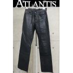 CHROME HEARTS(クロムハーツ) LTHR PANTS クロスボールボタン 5ポケット フレアニー ボタンフライ レザー ストレートパンツ ブラック【中古】【程度B】【カラーブラック】【取扱店舗BRINGアメリカ村店】