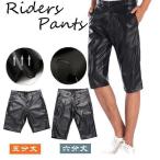 【特価】レザーパンツ 五分丈 6分丈 ハーフパンツ 半ズボン メンズ 革パン レザパン バイカパンツ スキニーパンツ ストレッチ PUレザー 代引不可