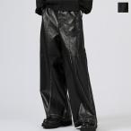 パンツ フェイクレザー ワイド パンツ メンズ