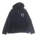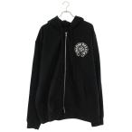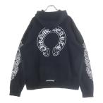 クロムハーツ【CHROMEHEARTS】Graveyard Cemetery Cross Sweat Zip-Up Hoodie グレイブヤードセメタリークロススウェットフーディジップアップパーカー 総柄 ロゴプリント フローラル ホースシュー ブラック/Sサイズ【中古】141528